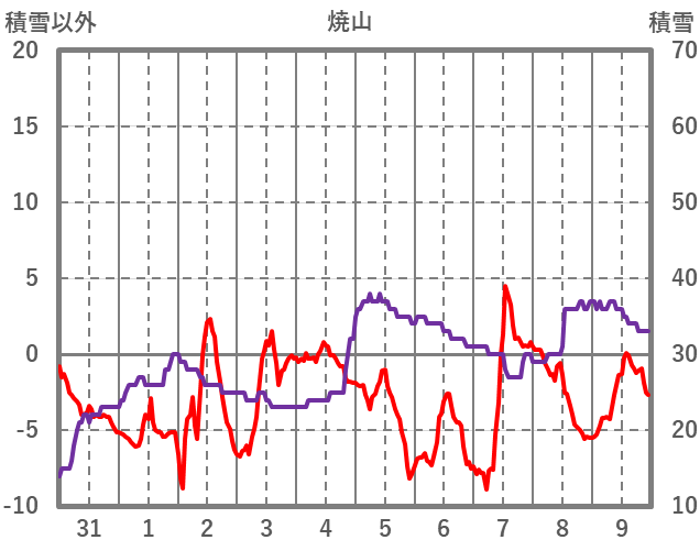 | 日 | 時 | 気温 | 降水 | 風向/風速 | 日照 | 積雪 | 降雪 |