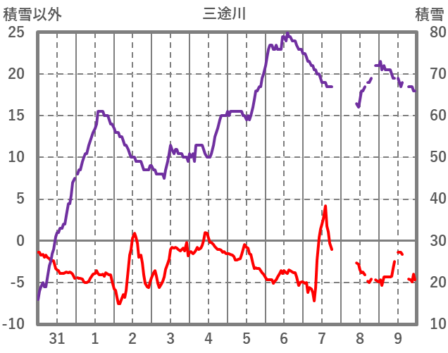 | 日 | 時 | 気温 | 降水 | 風向/風速 | 日照 | 積雪 | 降雪 |