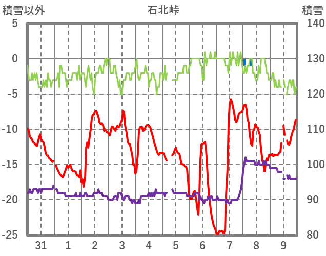 | 日 | 時 | 気温 | 降水 | 風向/風速 | 日照 | 積雪 | 降雪 |