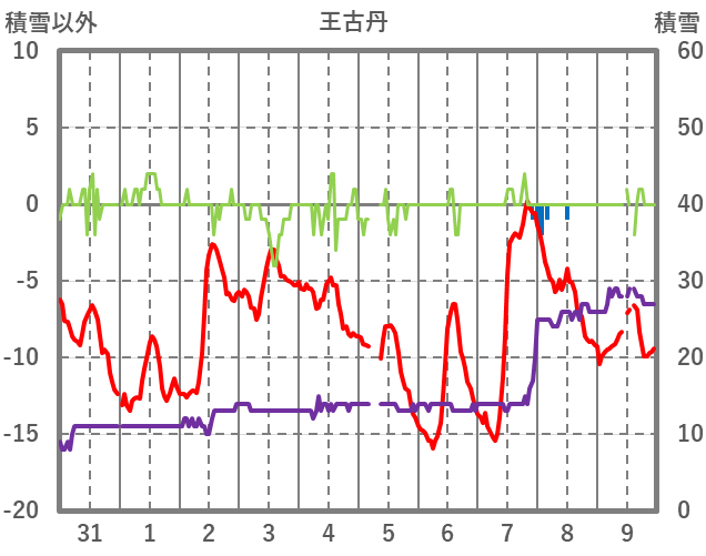 | 日 | 時 | 気温 | 降水 | 風向/風速 | 日照 | 積雪 | 降雪 |