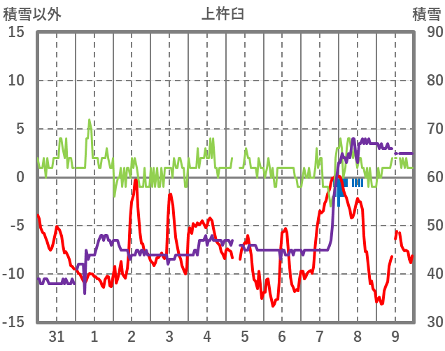 | 日 | 時 | 気温 | 降水 | 風向/風速 | 日照 | 積雪 | 降雪 |