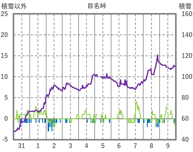 | 日 | 時 | 気温 | 降水 | 風向/風速 | 日照 | 積雪 | 降雪 |