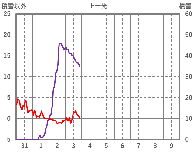 | 日 | 時 | 気温 | 降水 | 風向/風速 | 日照 | 積雪 | 降雪 |