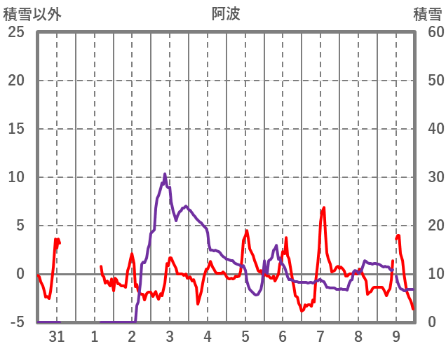 | 日 | 時 | 気温 | 降水 | 風向/風速 | 日照 | 積雪 | 降雪 |