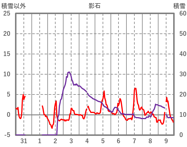 | 日 | 時 | 気温 | 降水 | 風向/風速 | 日照 | 積雪 | 降雪 |