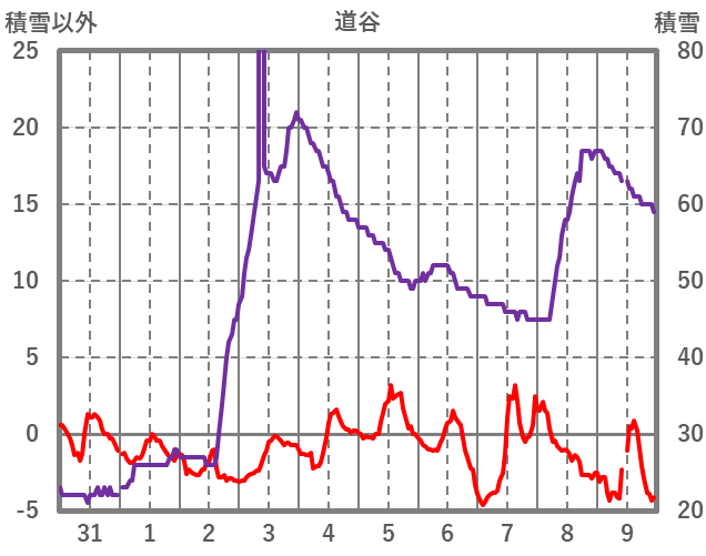 | 日 | 時 | 気温 | 降水 | 風向/風速 | 日照 | 積雪 | 降雪 |