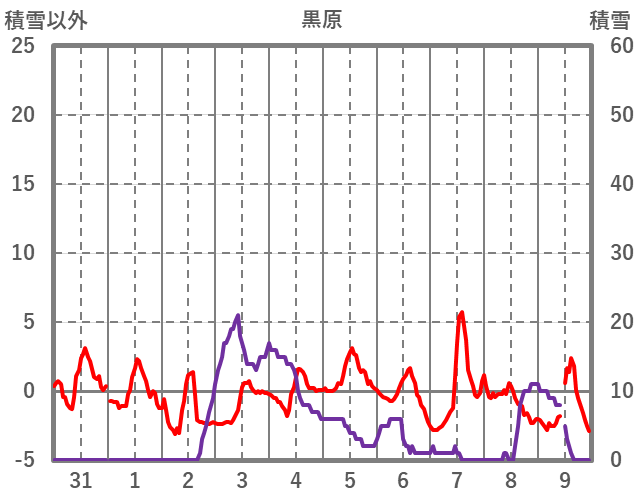 | 日 | 時 | 気温 | 降水 | 風向/風速 | 日照 | 積雪 | 降雪 |