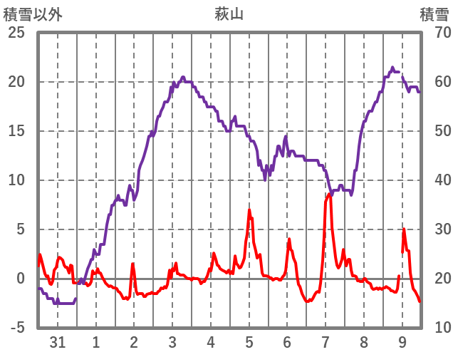 | 日 | 時 | 気温 | 降水 | 風向/風速 | 日照 | 積雪 | 降雪 |