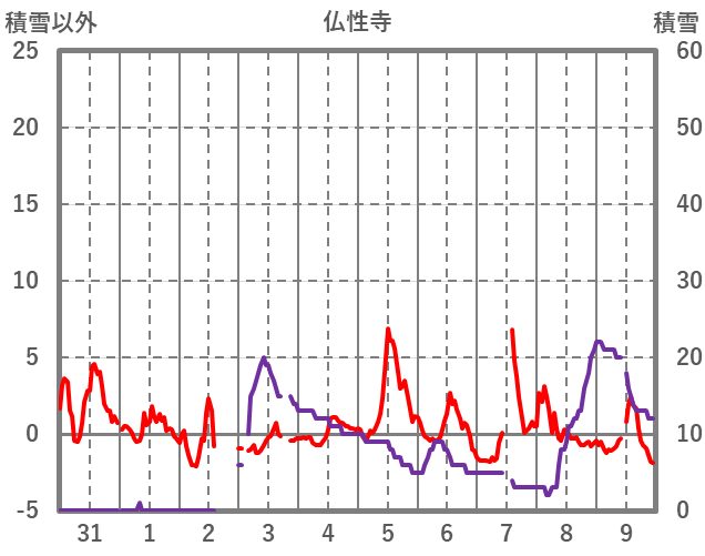 | 日 | 時 | 気温 | 降水 | 風向/風速 | 日照 | 積雪 | 降雪 |