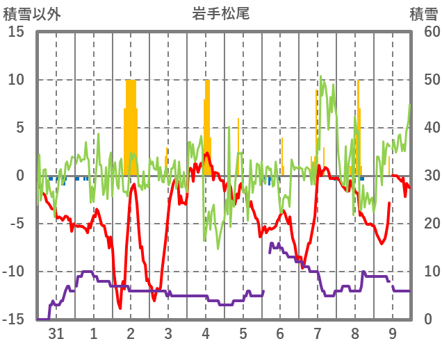 | 日 | 時 | 気温 | 降水 | 風向/風速 | 日照 | 積雪 | 降雪 |