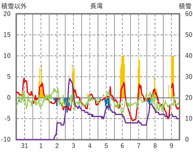 | 日 | 時 | 気温 | 降水 | 風向/風速 | 日照 | 積雪 | 降雪 |