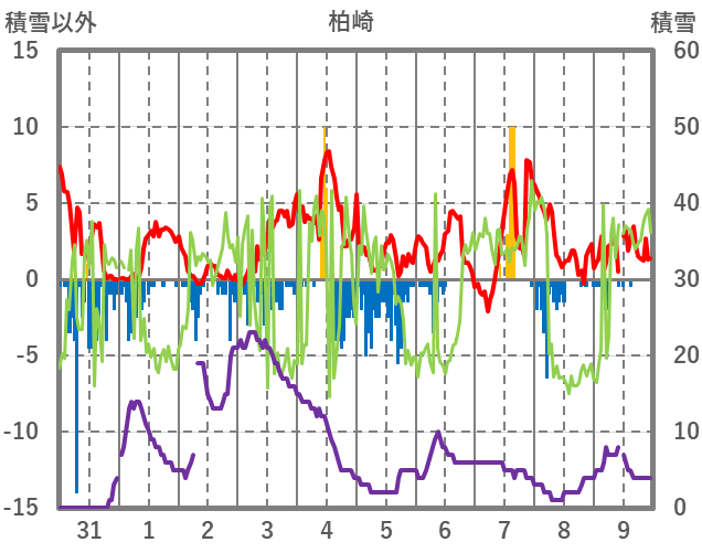 | 日 | 時 | 気温 | 降水 | 風向/風速 | 日照 | 積雪 | 降雪 |