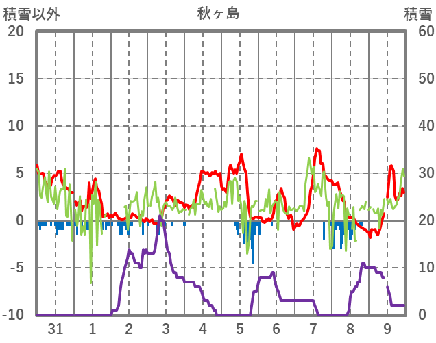 | 日 | 時 | 気温 | 降水 | 風向/風速 | 日照 | 積雪 | 降雪 |