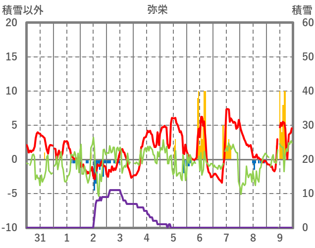 | 日 | 時 | 気温 | 降水 | 風向/風速 | 日照 | 積雪 | 降雪 |