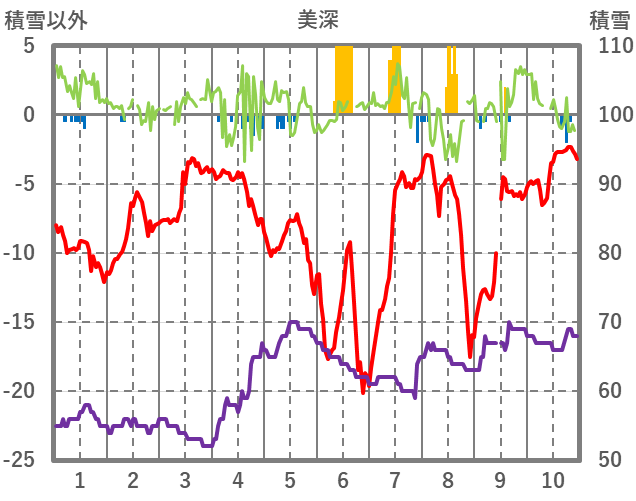 | 日 | 時 | 気温 | 降水 | 風向/風速 | 日照 | 積雪 | 降雪 |