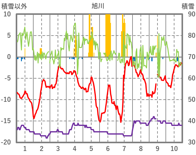 | 日 | 時 | 気温 | 降水 | 風向/風速 | 日照 | 積雪 | 降雪 |