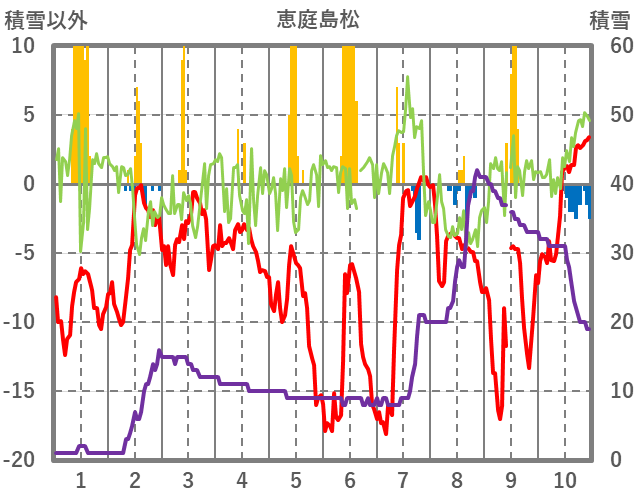 | 日 | 時 | 気温 | 降水 | 風向/風速 | 日照 | 積雪 | 降雪 |