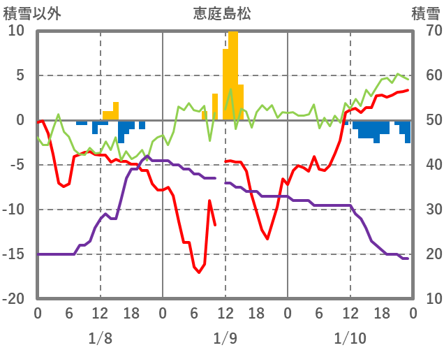 | 日 | 時 | 気温 | 降水 | 風向/風速 | 日照 | 積雪 | 降雪 |