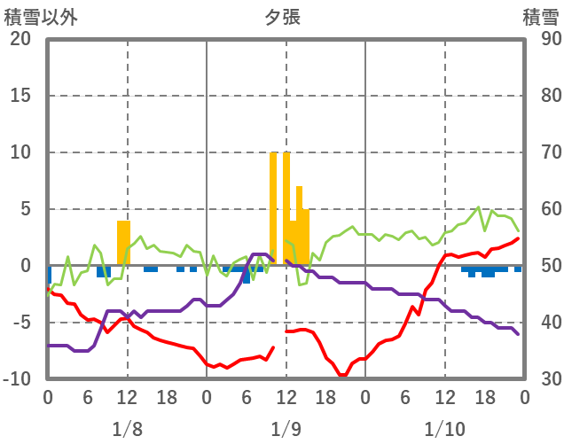 | 日 | 時 | 気温 | 降水 | 風向/風速 | 日照 | 積雪 | 降雪 |