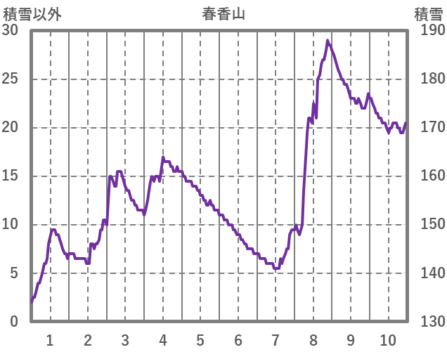 | 日 | 時 | 気温 | 降水 | 風向/風速 | 日照 | 積雪 | 降雪 |