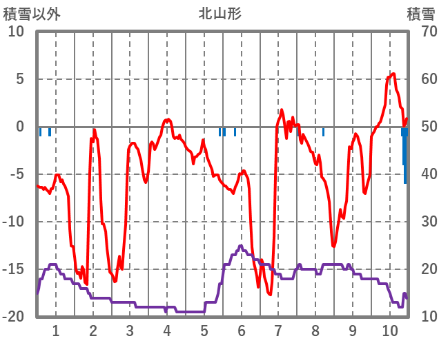 | 日 | 時 | 気温 | 降水 | 風向/風速 | 日照 | 積雪 | 降雪 |