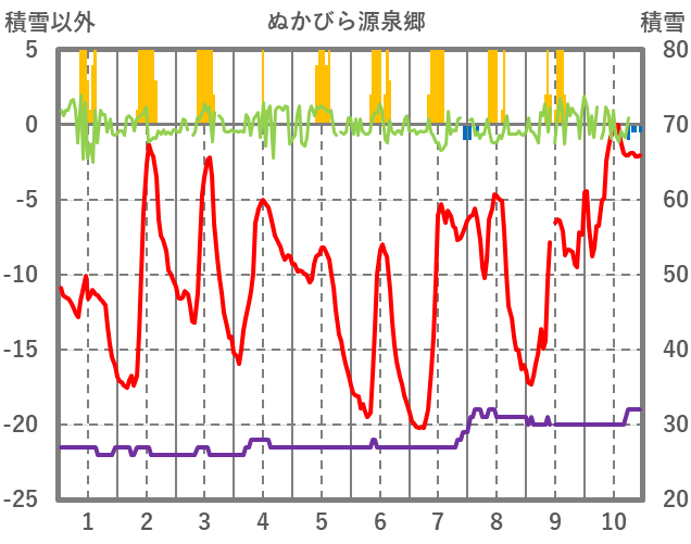 | 日 | 時 | 気温 | 降水 | 風向/風速 | 日照 | 積雪 | 降雪 |