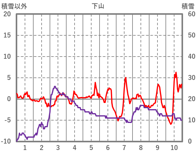 | 日 | 時 | 気温 | 降水 | 風向/風速 | 日照 | 積雪 | 降雪 |