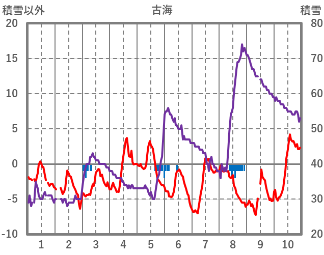 | 日 | 時 | 気温 | 降水 | 風向/風速 | 日照 | 積雪 | 降雪 |