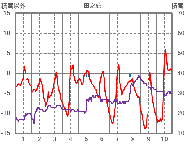 | 日 | 時 | 気温 | 降水 | 風向/風速 | 日照 | 積雪 | 降雪 |