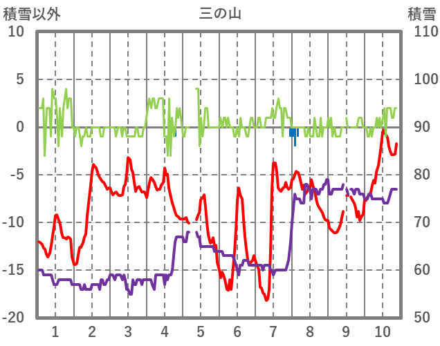 | 日 | 時 | 気温 | 降水 | 風向/風速 | 日照 | 積雪 | 降雪 |