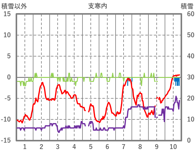 | 日 | 時 | 気温 | 降水 | 風向/風速 | 日照 | 積雪 | 降雪 |