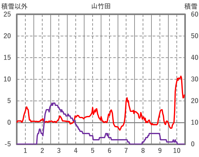 | 日 | 時 | 気温 | 降水 | 風向/風速 | 日照 | 積雪 | 降雪 |
