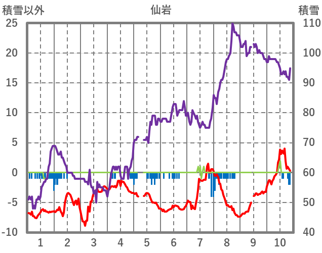 | 日 | 時 | 気温 | 降水 | 風向/風速 | 日照 | 積雪 | 降雪 |