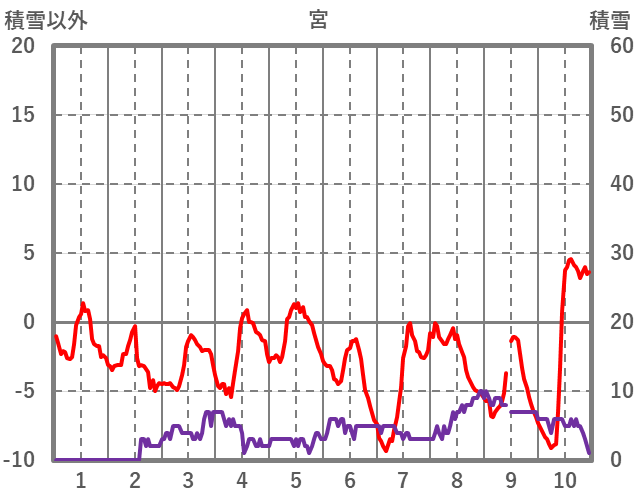 | 日 | 時 | 気温 | 降水 | 風向/風速 | 日照 | 積雪 | 降雪 |