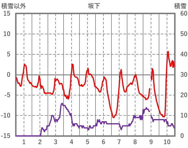 | 日 | 時 | 気温 | 降水 | 風向/風速 | 日照 | 積雪 | 降雪 |