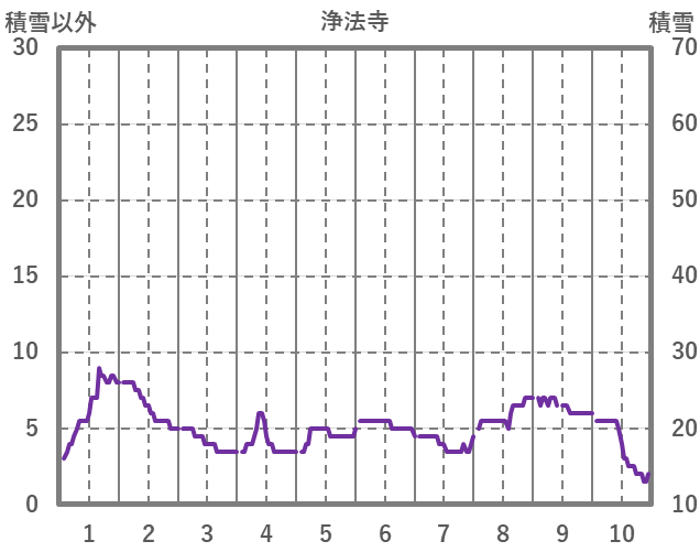 | 日 | 時 | 気温 | 降水 | 風向/風速 | 日照 | 積雪 | 降雪 |