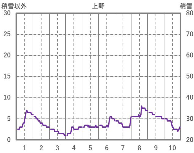 | 日 | 時 | 気温 | 降水 | 風向/風速 | 日照 | 積雪 | 降雪 |