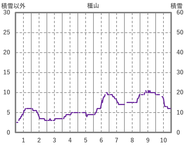 | 日 | 時 | 気温 | 降水 | 風向/風速 | 日照 | 積雪 | 降雪 |