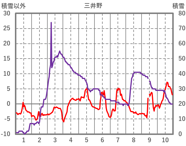| 日 | 時 | 気温 | 降水 | 風向/風速 | 日照 | 積雪 | 降雪 |
