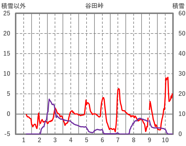 | 日 | 時 | 気温 | 降水 | 風向/風速 | 日照 | 積雪 | 降雪 |