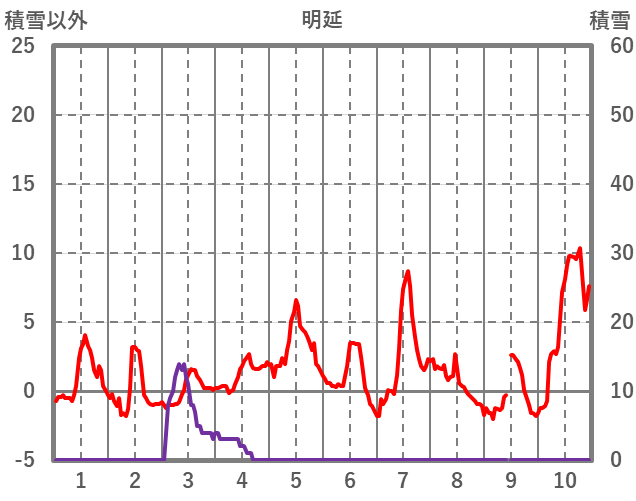 | 日 | 時 | 気温 | 降水 | 風向/風速 | 日照 | 積雪 | 降雪 |