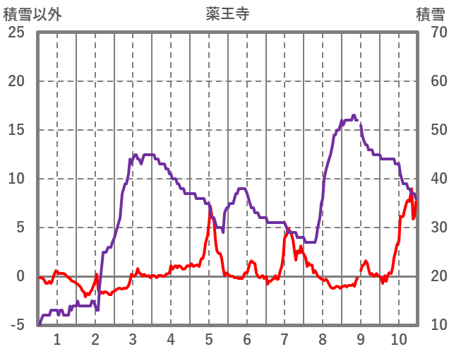 | 日 | 時 | 気温 | 降水 | 風向/風速 | 日照 | 積雪 | 降雪 |