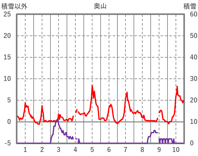 | 日 | 時 | 気温 | 降水 | 風向/風速 | 日照 | 積雪 | 降雪 |