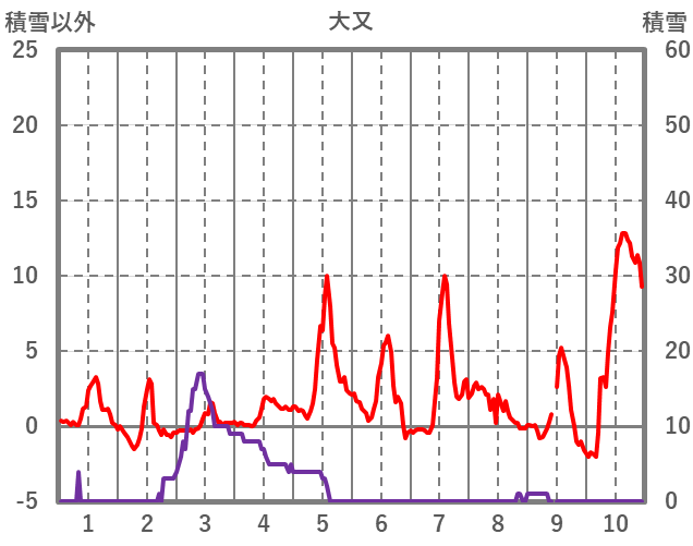 | 日 | 時 | 気温 | 降水 | 風向/風速 | 日照 | 積雪 | 降雪 |