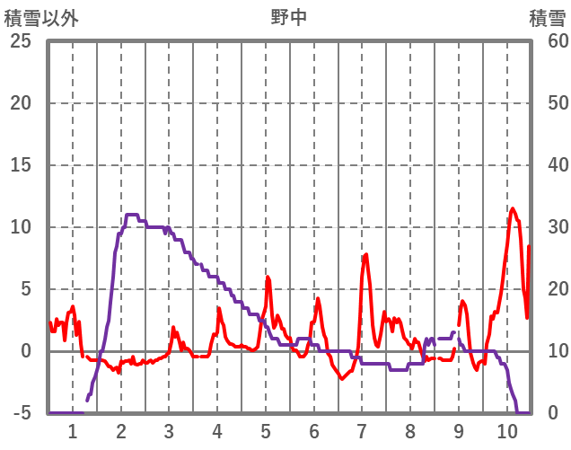 | 日 | 時 | 気温 | 降水 | 風向/風速 | 日照 | 積雪 | 降雪 |