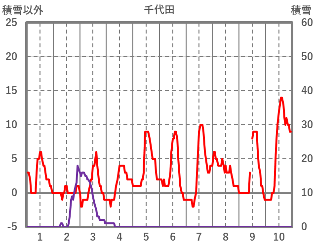 | 日 | 時 | 気温 | 降水 | 風向/風速 | 日照 | 積雪 | 降雪 |