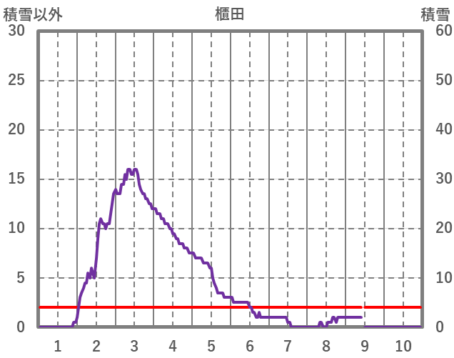 | 日 | 時 | 気温 | 降水 | 風向/風速 | 日照 | 積雪 | 降雪 |