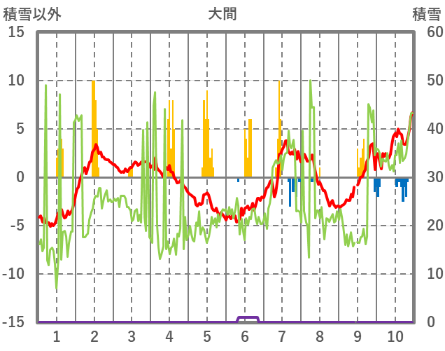 | 日 | 時 | 気温 | 降水 | 風向/風速 | 日照 | 積雪 | 降雪 |