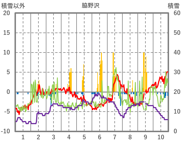 | 日 | 時 | 気温 | 降水 | 風向/風速 | 日照 | 積雪 | 降雪 |