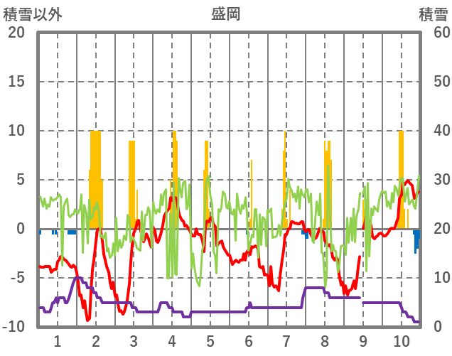 | 日 | 時 | 気温 | 降水 | 風向/風速 | 日照 | 積雪 | 降雪 |